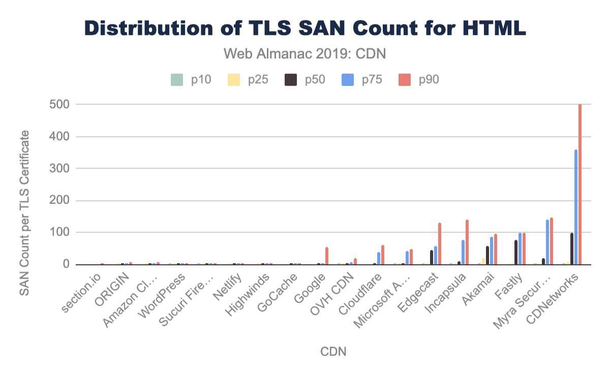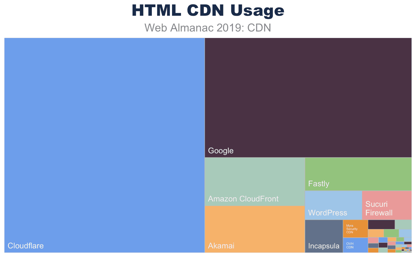 他の観察研究と同様に、測定できる範囲と影響には限界があります。 Web AlmanacのCDN使用に関して収集された統計は、特定のCDNベンダーのパフォーマンスや有効性を意味するものではありません。