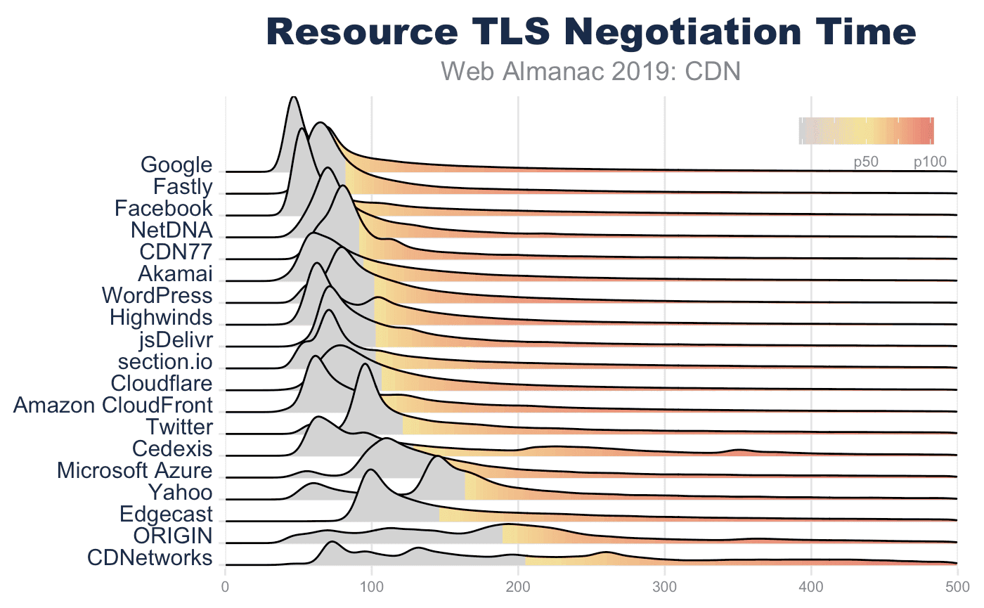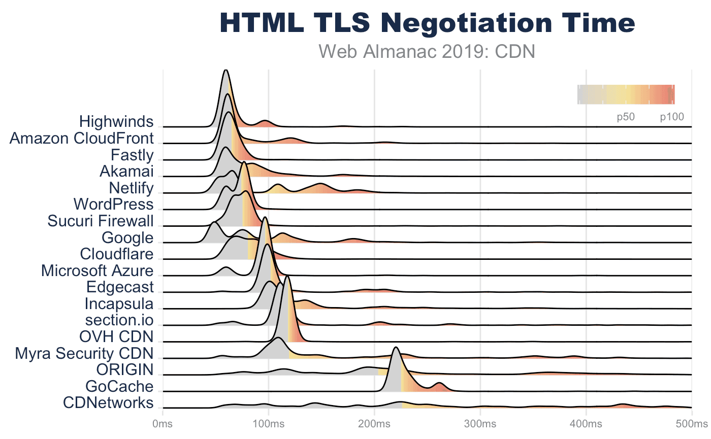 Web Almanacの将来のバージョンでは、CDNベンダー間のTLSおよびRTTの管理をより詳細に検討する予定です。興味深いのは、OCSP Staplingの影響、TLS暗号パフォーマンスの違いです。 CWND(TCP輻輳ウィンドウ)成長率、特にBBR v1、v2、従来のTCP Cubicの採用。