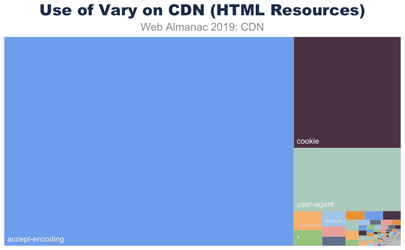 Varyヘッダーには、CDNチェインの証拠も含まれています。これらは、Accept-Encoding、Accept-Encoding、またはAccept-Encoding、Accept-Encoding、Accept-EncodingなどのVaryヘッダーで確認できます。これらのチェインとViaヘッダーエントリをさらに分析すると、たとえば、サードパーティタグをプロキシしているサイトの数など興味深いデータが明らかになる可能性があります。