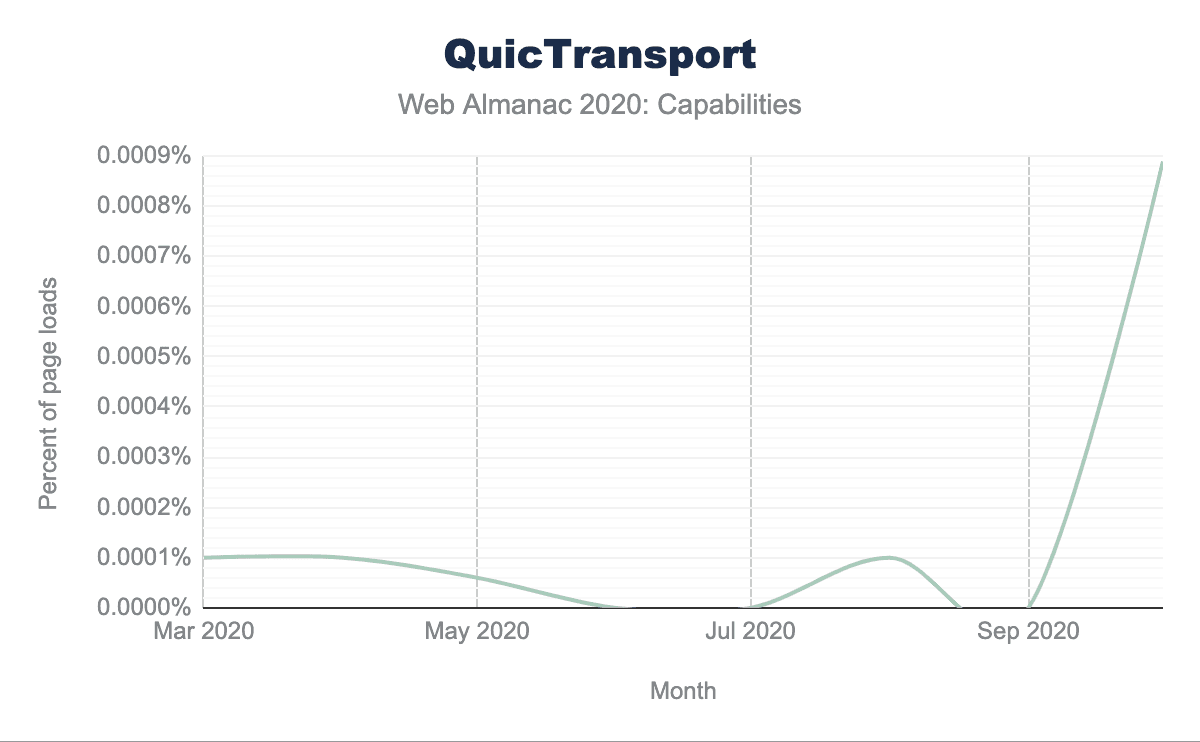 現在はまだほとんど測定できないほどの使用率です。2020年10月には強力に増加し、現在ではChromeでのページロードの0.00089%の間に使用されています。