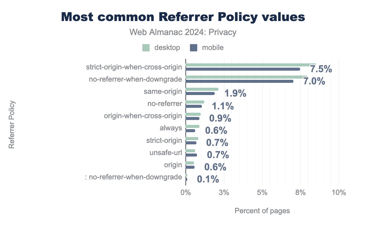 図10.12. もっとも一般的なReferrer Policyの値。